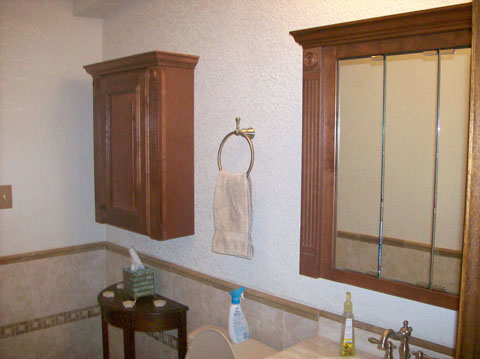 New sheetrock and knock down texture new cabinets and travel fixture.