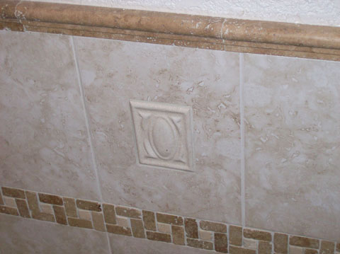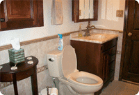 Completely remodeled ½ bath with 2 doors for walk through availability on new tile floor.